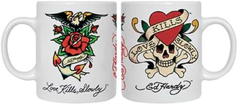 Amazon Com Ed Hardy Love Kills Slowly Taza Todo Blanco Celulares Y Accesorios